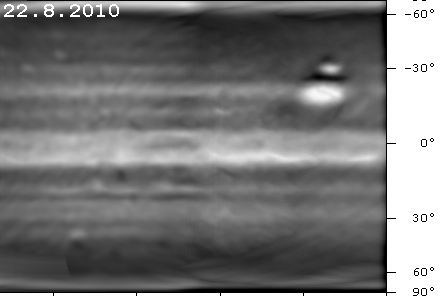 Gut sichtbar ist weiter der 3. Rote Fleck in der nördlichen Polkappe, der