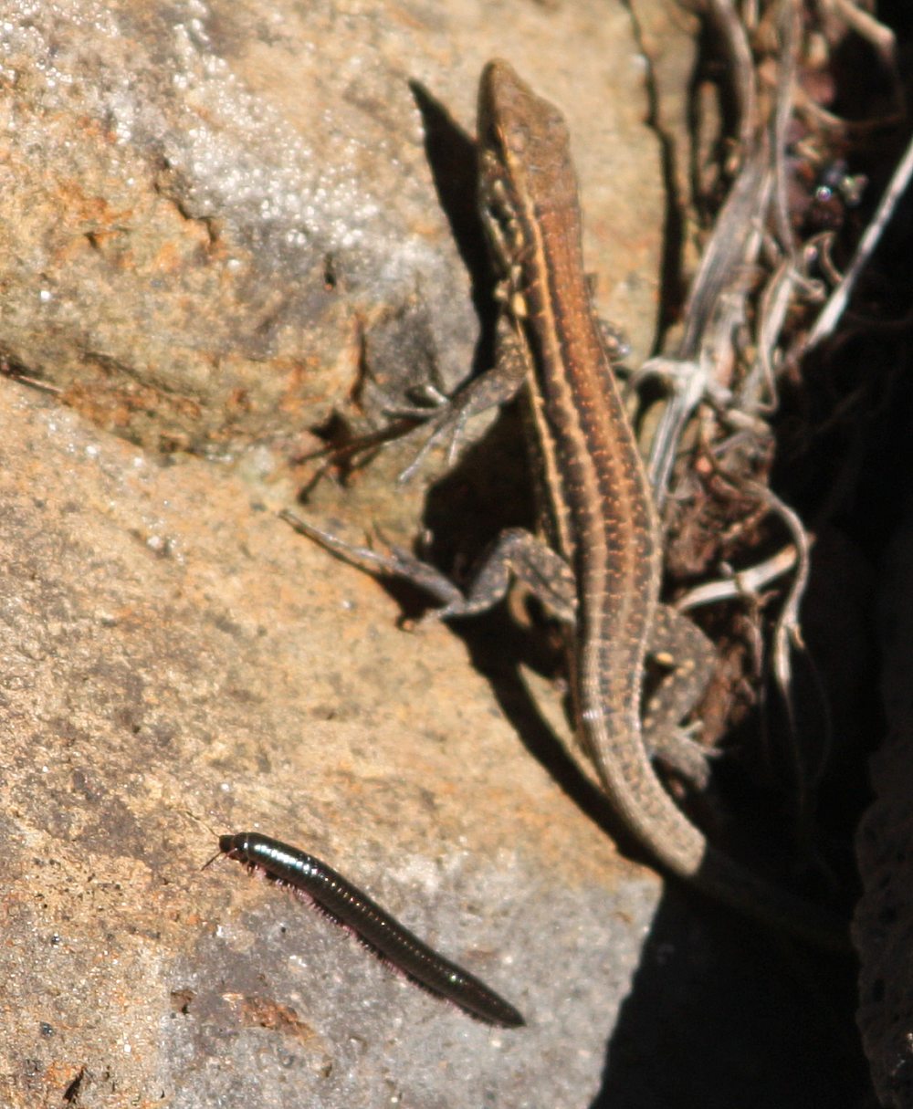 Beim Gang um das Haus ließen sich bei Sonnenschein leicht ein Dutzend Eidechsen fotografieren. Als Nahrungsgrundlage gab es zahlreiche große und kleine Insekten.