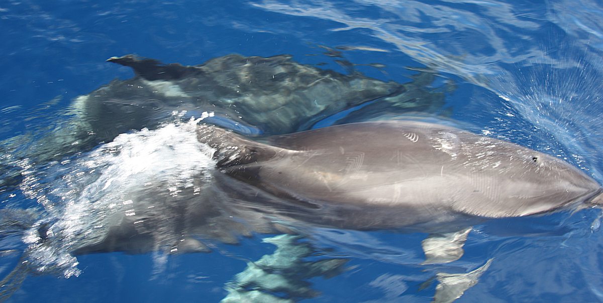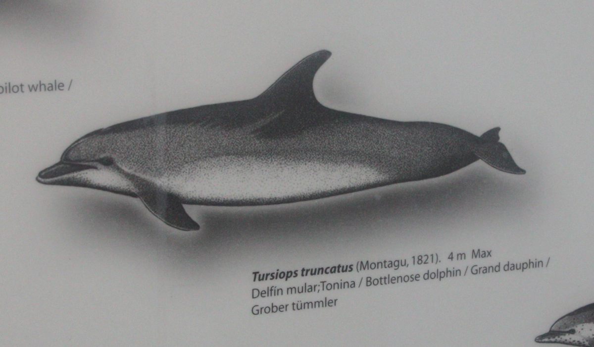 Die von uns gesichtete Art Tursiops truncatus ist mit 4m Länge und 800kg Gewicht die größte lebende Delfinart.