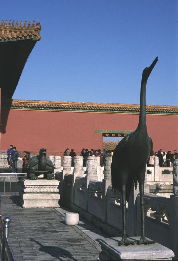 Neben der Halle der vollkommenden Harmonie befinden sich Statuen von Kranichen und Schildkröten.