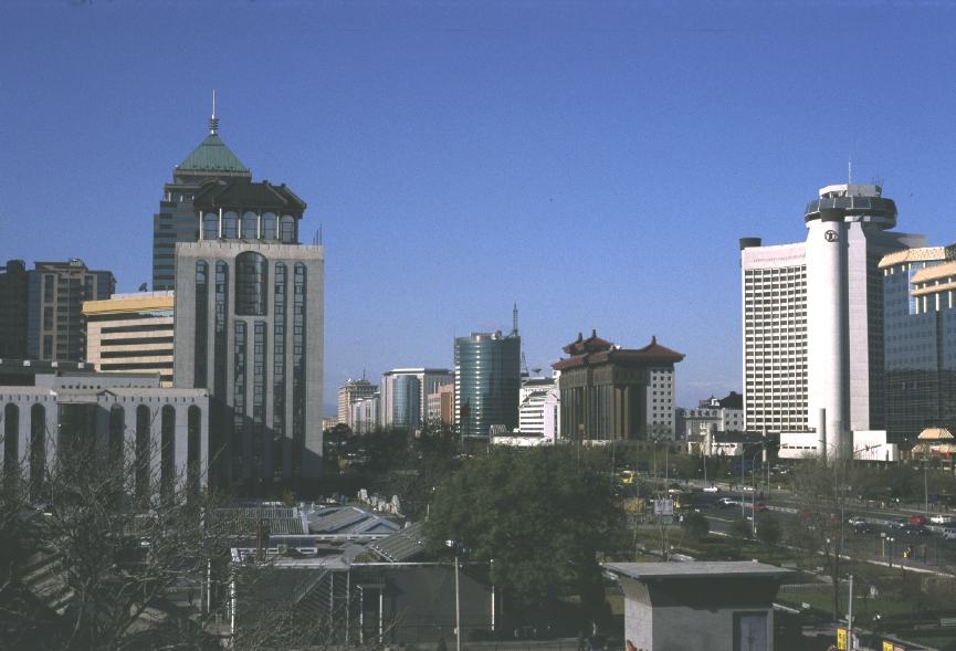 Die Skyline von Peking wird dominiert von Wolkenkratzern