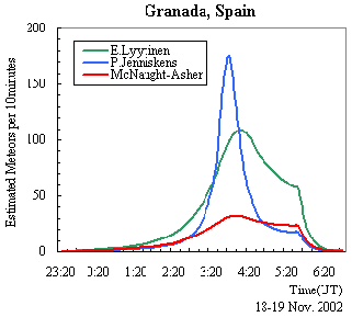 2002 sollten demnach helle Meteore das Ereignis dominieren. Dies konnte so nicht bestätigt