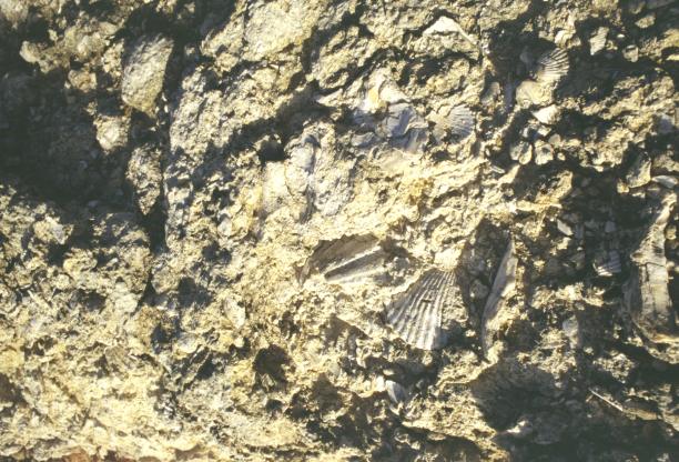 An vielen Stellen sind die versteinerten Muscheln zu erkennen