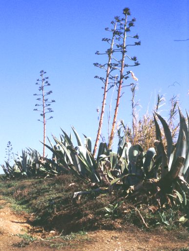 Die Algave bildet fast haushohe Blütenstände. Nach der Blüte geht die Pflanze ein.