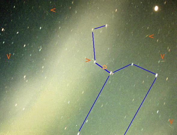 Es sind 6 Schnuppen zu erkennen. Unten sind sie markiert und