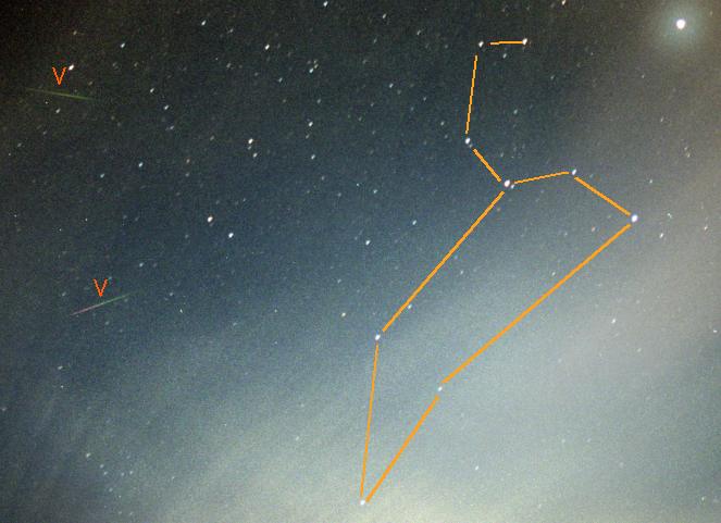 Auf den etwa 50 Bildern sind aber ca. 50 mittelhelle und schwache Meteore zu erkennen.