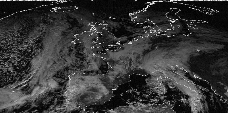 Die Wettersituation am 18.11.2002 und am 19.11.2002 jeweils zur Mittagszeit im visuelle Spektralbereich.