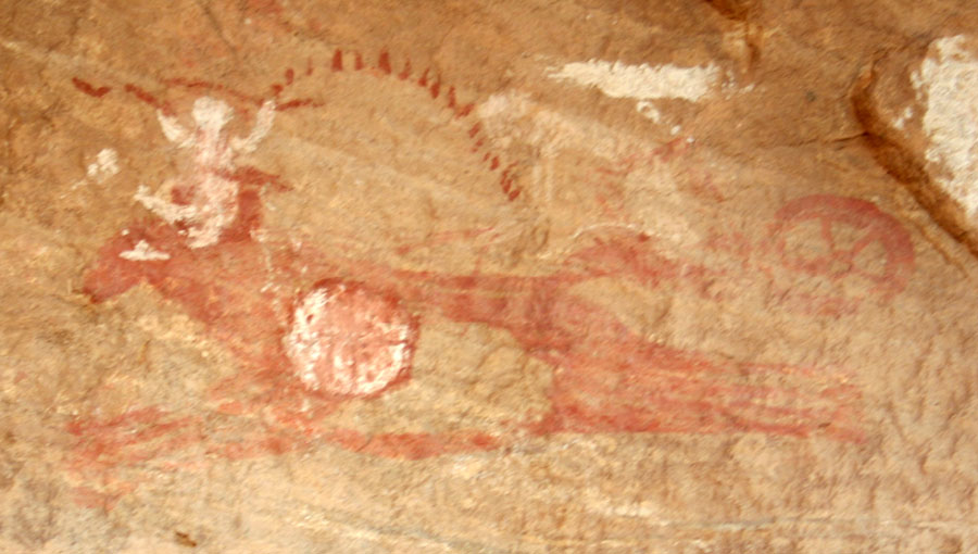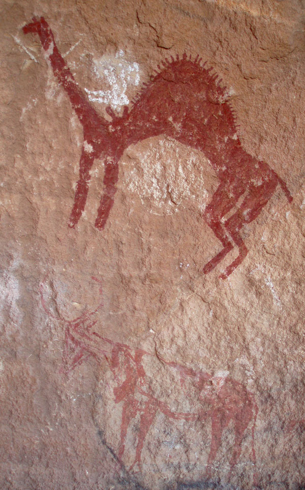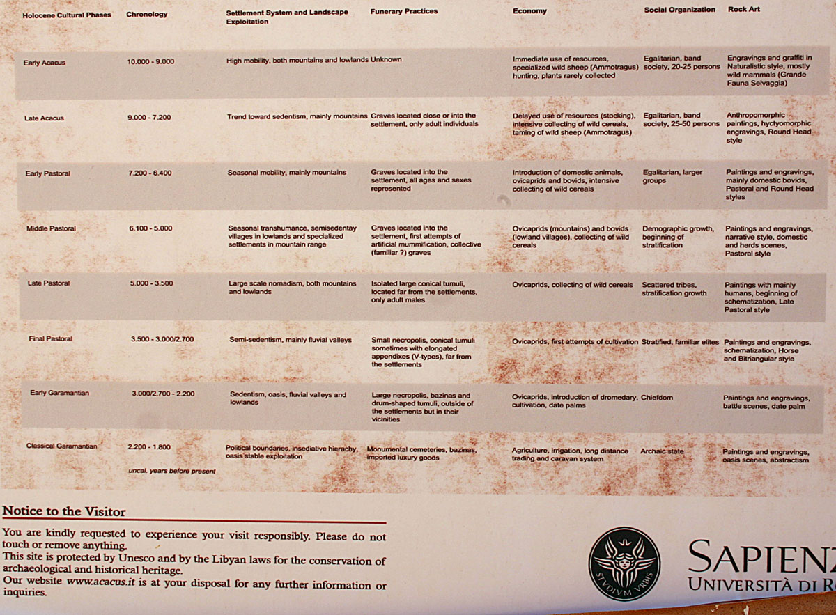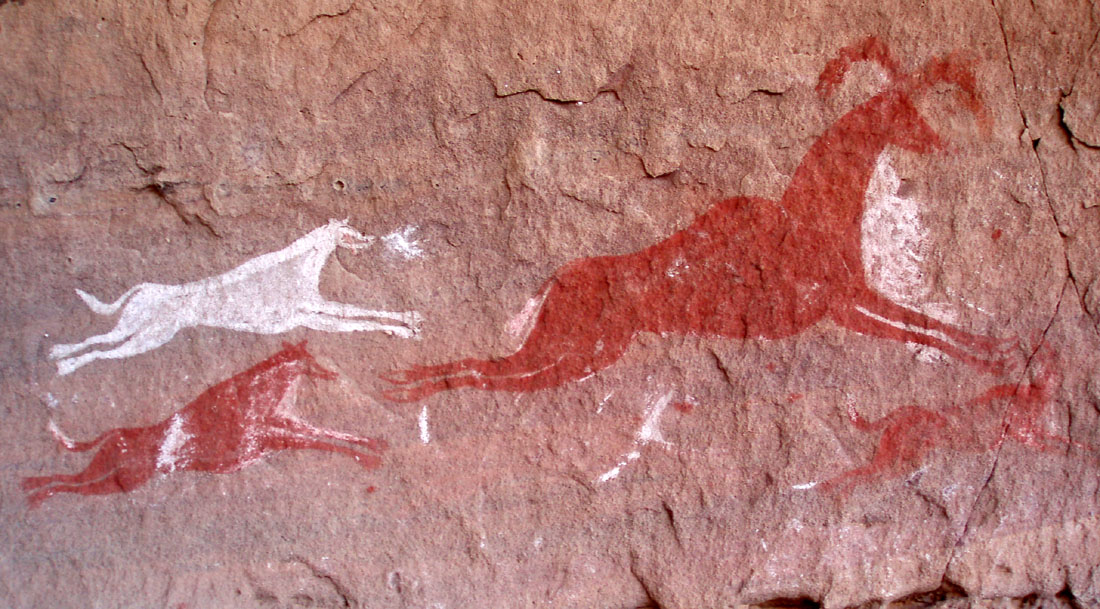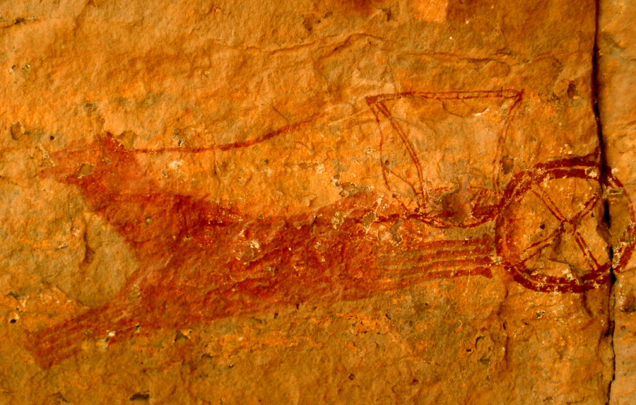 -In der Garamantenzeit findet man gelegentlich auch Streitwagen mit Pferden. Danach wird die Landschaft endgültig zur Wüste