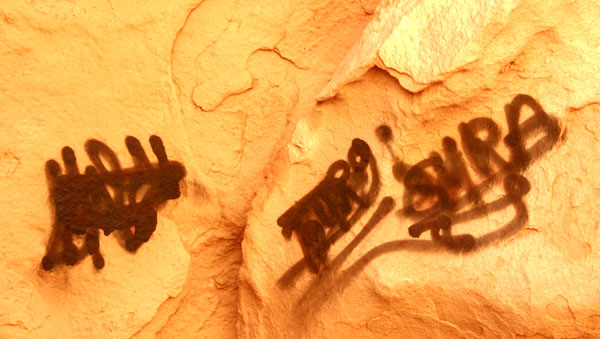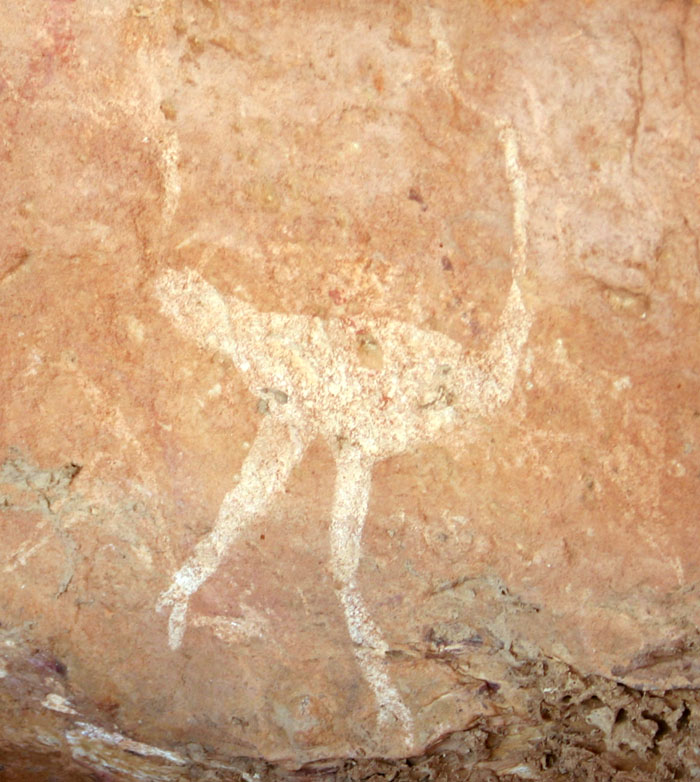 Umweit des Grabes gibt es Zeichnungen mit einem Strauß und Rundkopffiguren