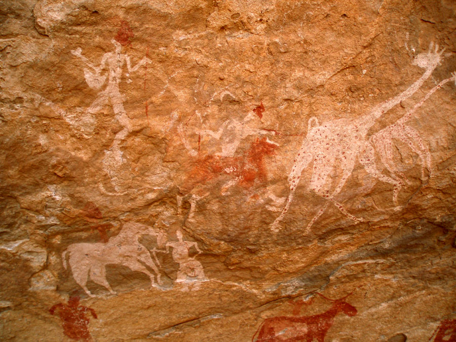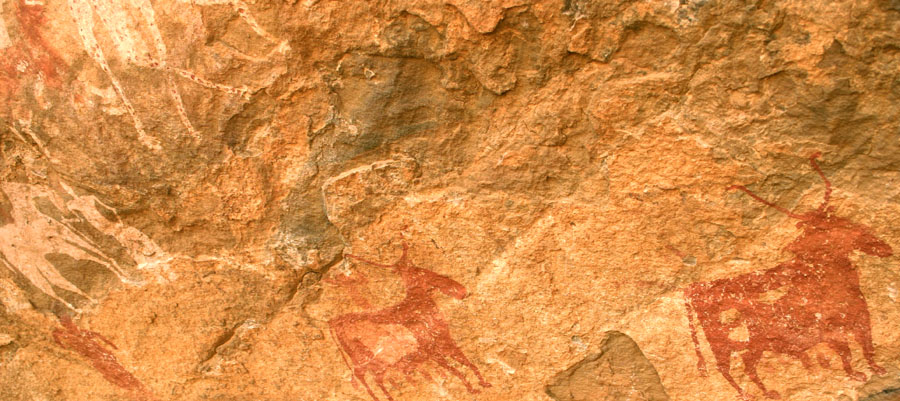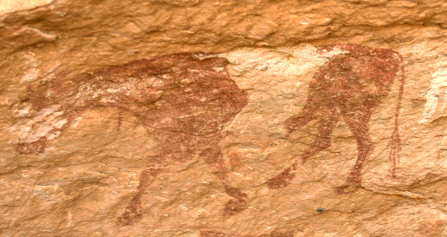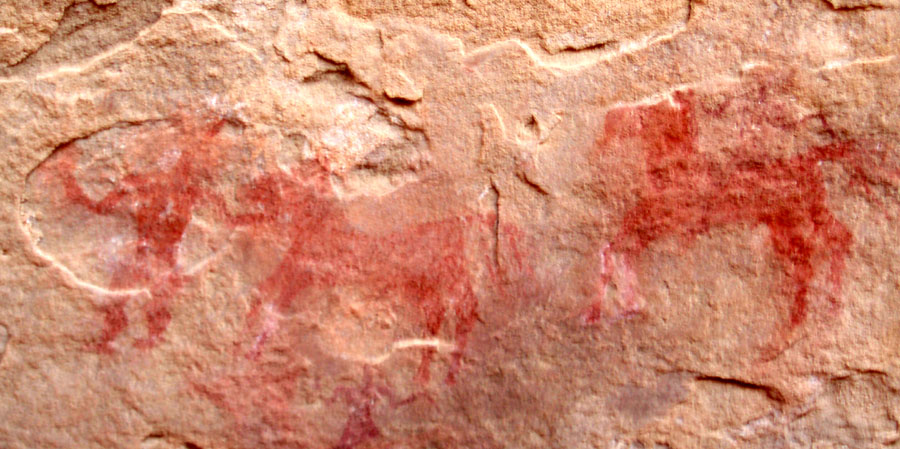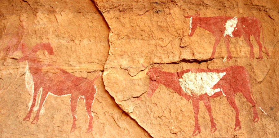 -Ab der jüngeren Steinzeit um 7000 v.Chr. gibt es erste Viehzüchter. Die Felsbilder zeigen meistens Rinder.