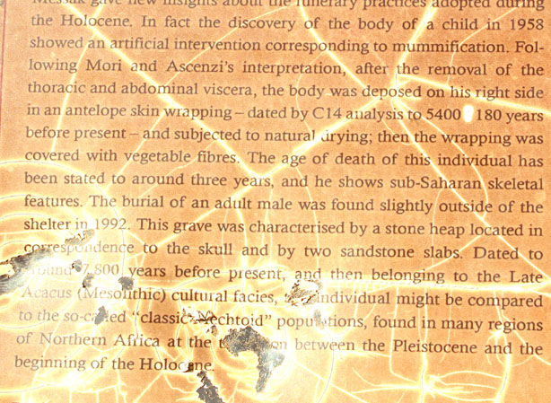 An dieser Stelle fand man eine 7400 Jahre alte Kindermumie die heute im Tripolis-Museum zu sehen ist.