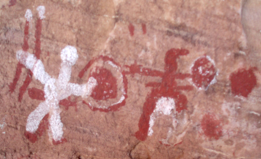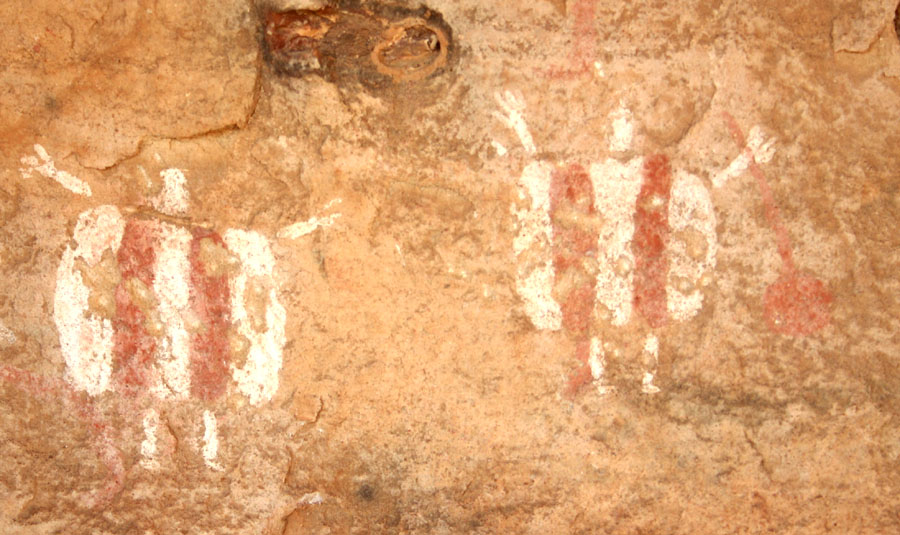 Die Rundkopffiguren waren um von 9000 v.Chr. bis 6400 v.Chr. in Mode. Bemerkenswert ist der 2-farbige Stil