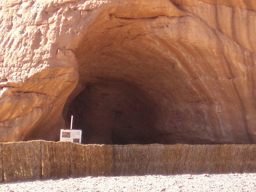 lichtgeschützt unter Felsvorsprüngen und sind mit einem Zaun gekennzeichnet.