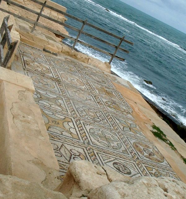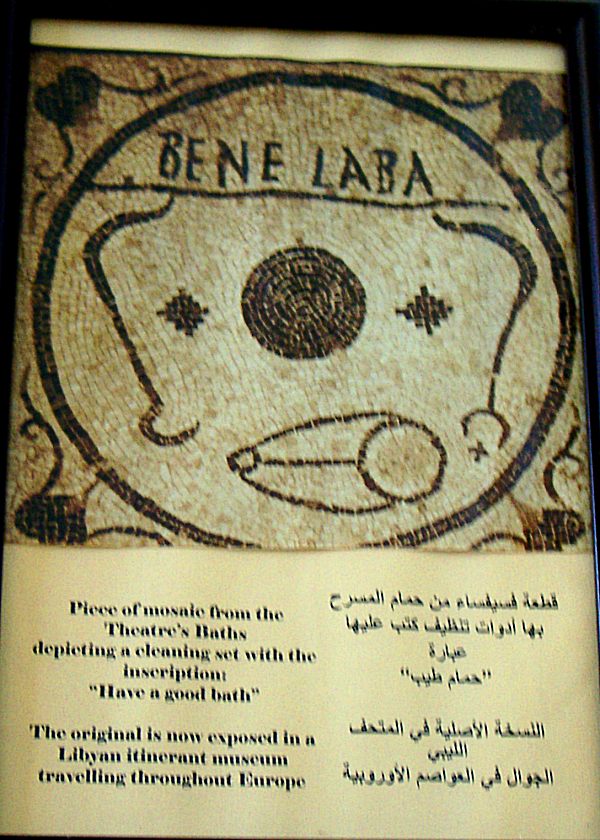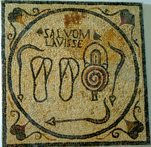 Diese Mosaike lagen vor dem Eingang der Thermen und zeigen Badeutensilien
