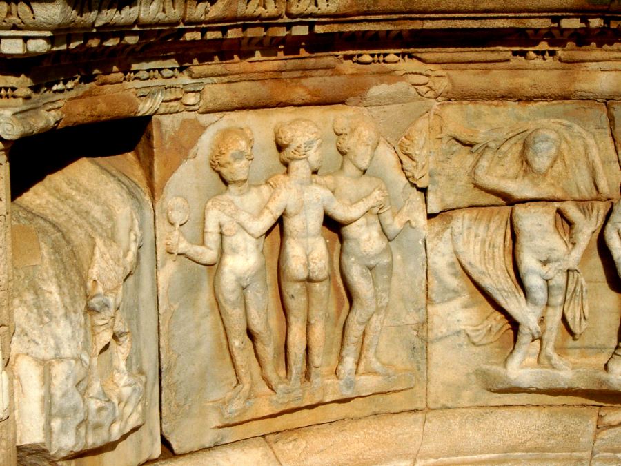 Die 3 Grazien Minerva, Juno und Venus vor dem Parisurteil. Eine in der Antike häufig