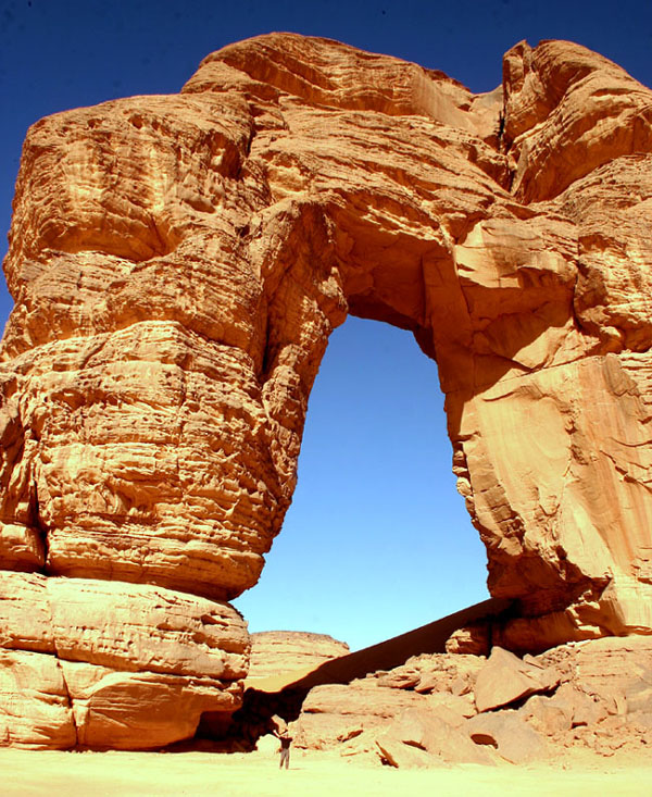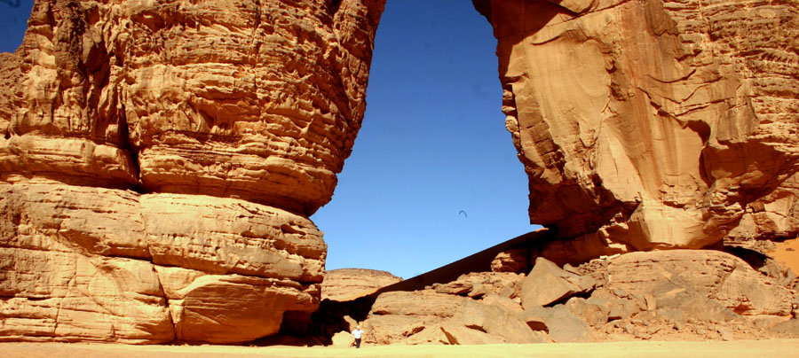 Der höchste Bogen im Akakus. Man beachte die Größe der Personen im Vordergrund.