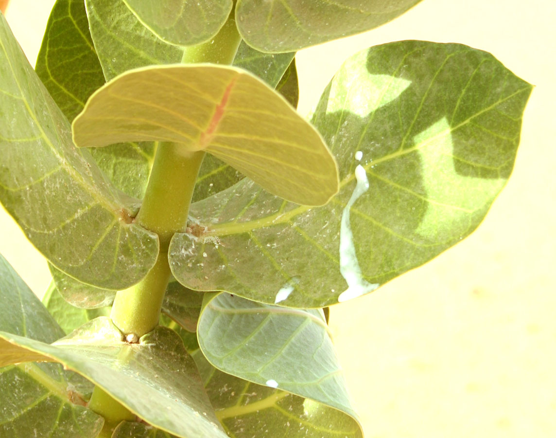Wenn man die Blätter anreist, tritt ein milchiger Saft