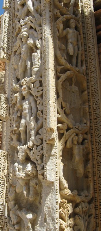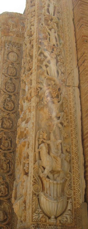 Die Reliefpfeiler zeigen Darstellungen der Bachus- und der Herkules-Sagen