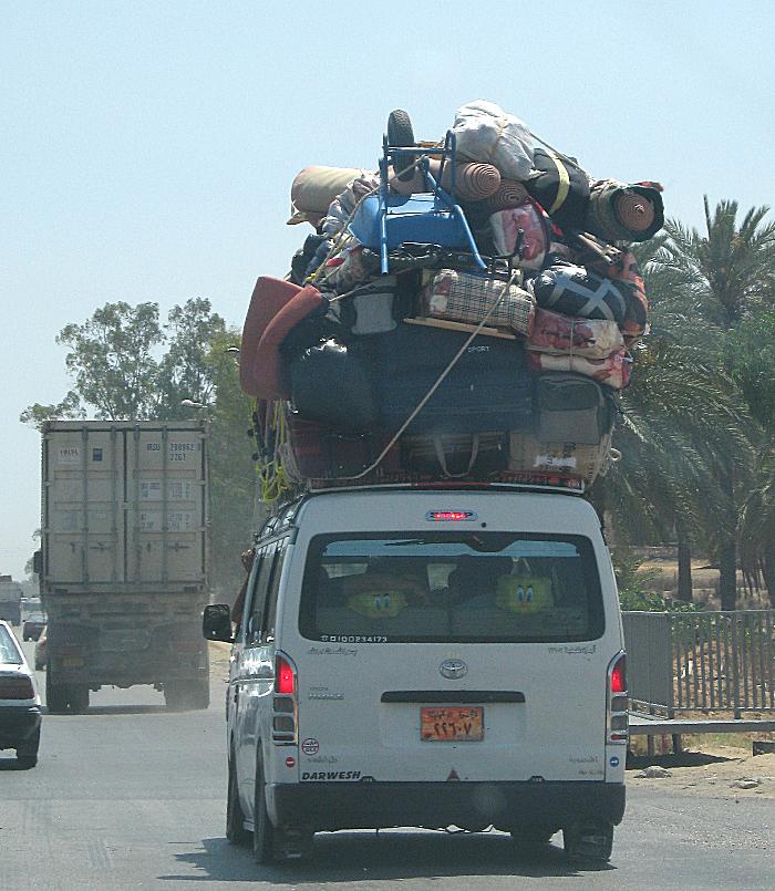 Typisch sind die überladenen Autos. Sie gehören ägyptischen Gastarbeitern