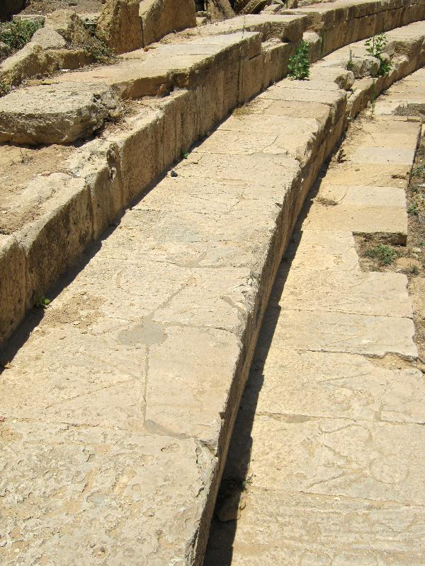 Auf den Sitzen antikes Graffiti. Hier hatten die alten Römer ihre Stammplätze mit