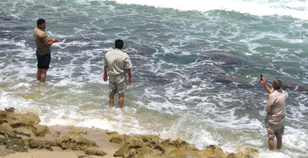 Die Hitze versuchten einige Libyer durch ein Fußbad zu lindern, während am Horizont die
