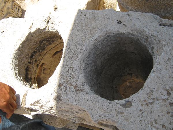 Diese etwas seltsamen Löcher waren Hohlmaße für Getreide, Wein und Oliven.