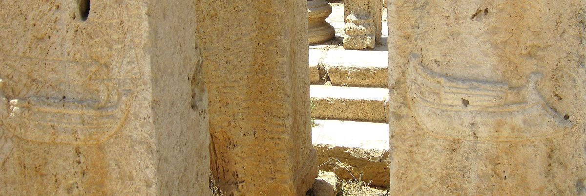 Der Eingang des Marktplatzes zeigt römische und Phoenizische Schiffe, als Sinnbild