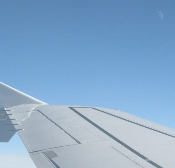 Beim Flug war über den Tragflächen der aufgehende Mond zu sehen.