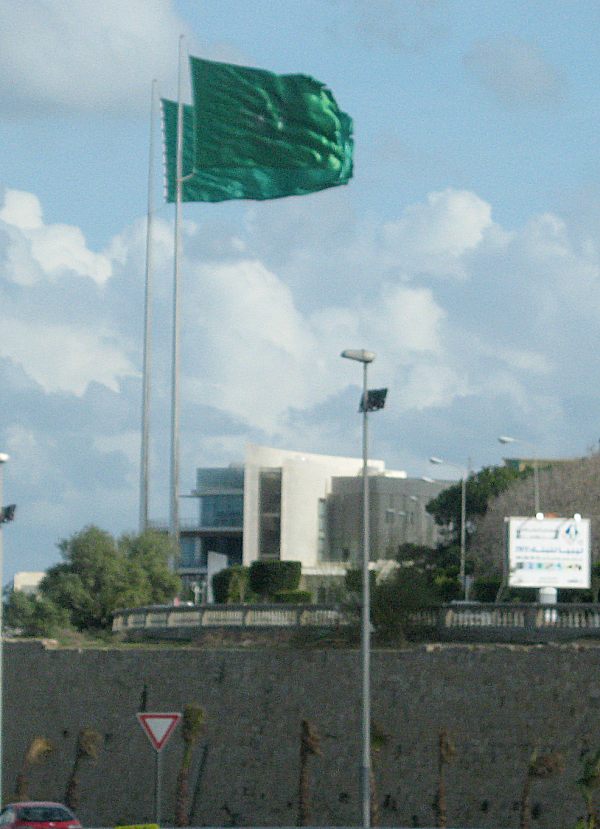 Auch am nächsten Morgen war das Wetter noch stürmisch und die libysche Flagge flatterte im Wind.