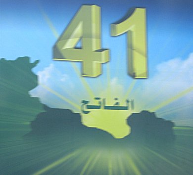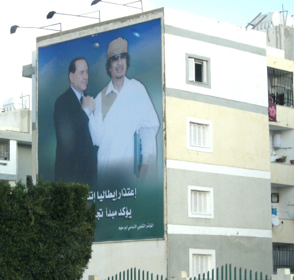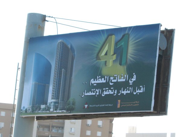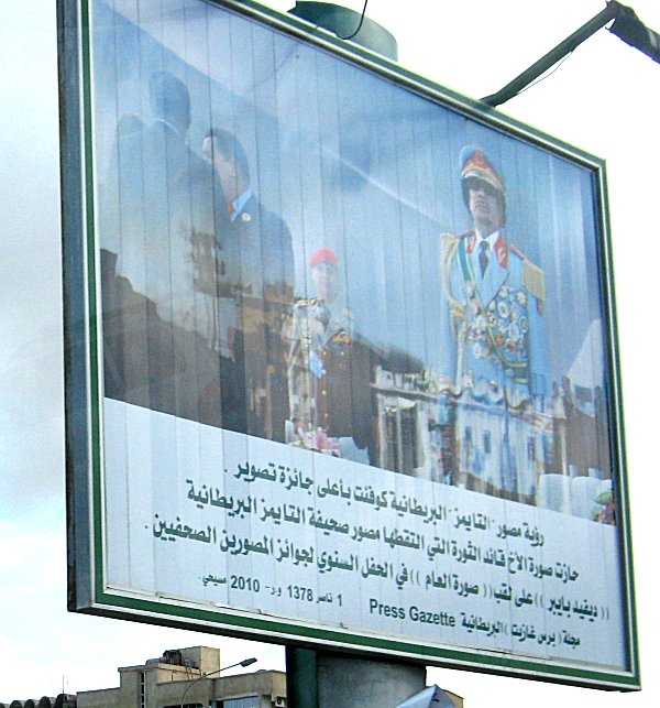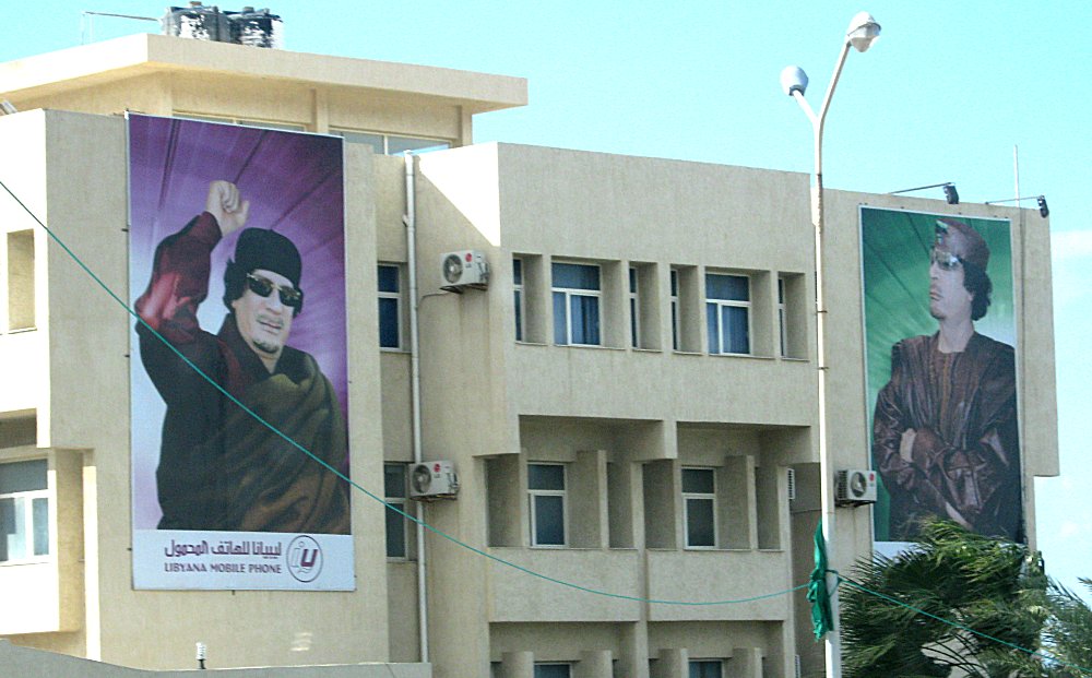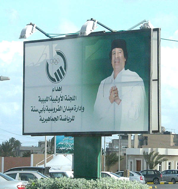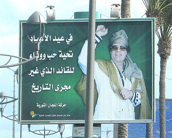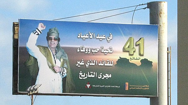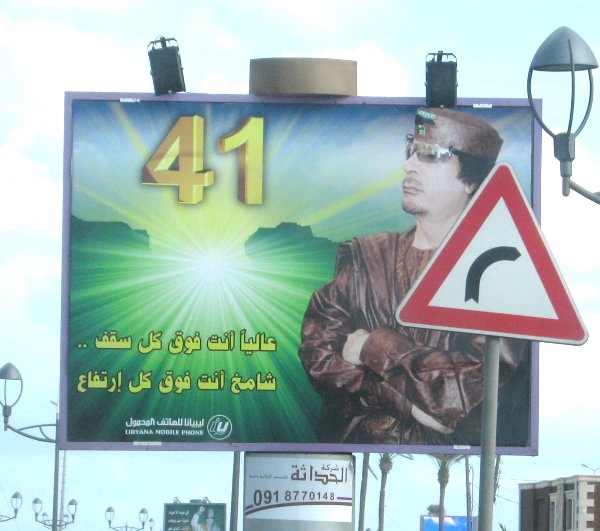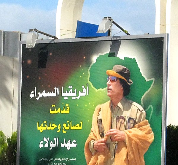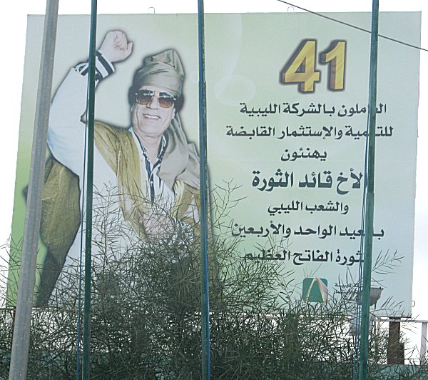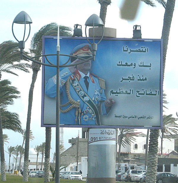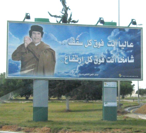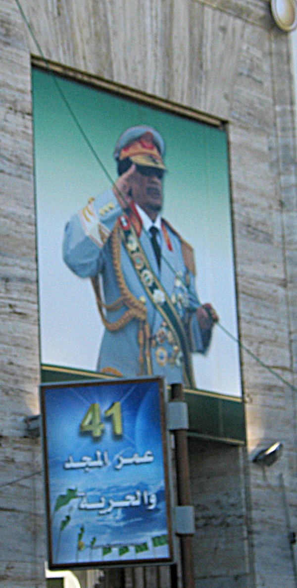 man wechselnde Gaddafibilder zeigen. Die Tafeln werden beleuchtet damit