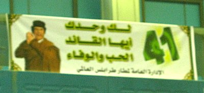 Etwa 80% der Propaganda-Plakate zeigen Gaddafi selbst. Der Rest läßt gern mal über