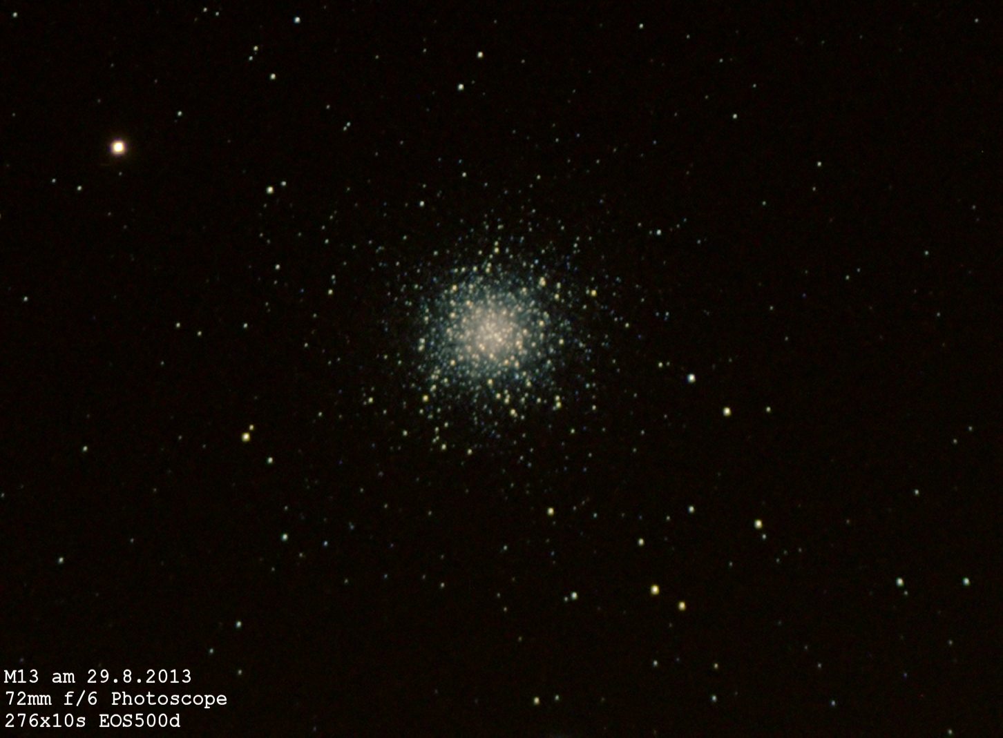 M13, Durchmesser ca. 17', Helligkeit 5,7 mag
