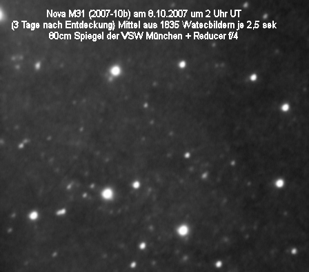 Mit der obigen Aufnahme wurde versucht die in der Andromedagalaxie