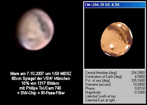 Dank passablen Seeing sind auf den Bildern vom 10.10.07 und 17.10.07