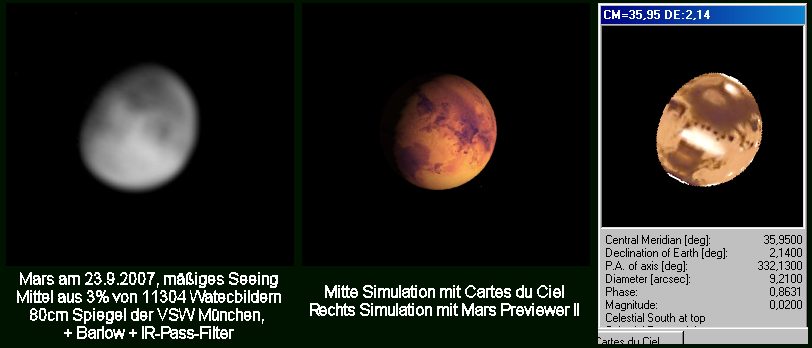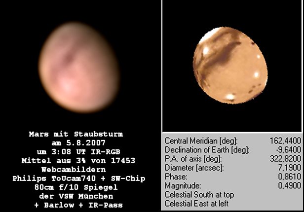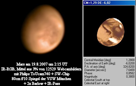 Die Aufnahme von 19.8. zeigt 2 helle Gebiete bei denen es sich lt. Mars-Previewer