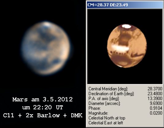 Aufgrund der positiven Deklination konnte der schrumpfende Mars am Abendhimmel lange verfolgt werden.
