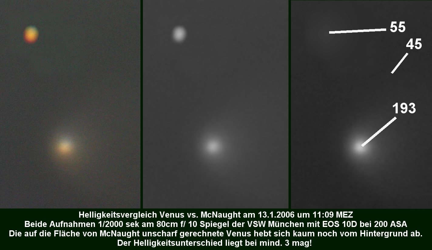also mind -4 mag! Auch der Durchmesser des Kopfes war mit Venus