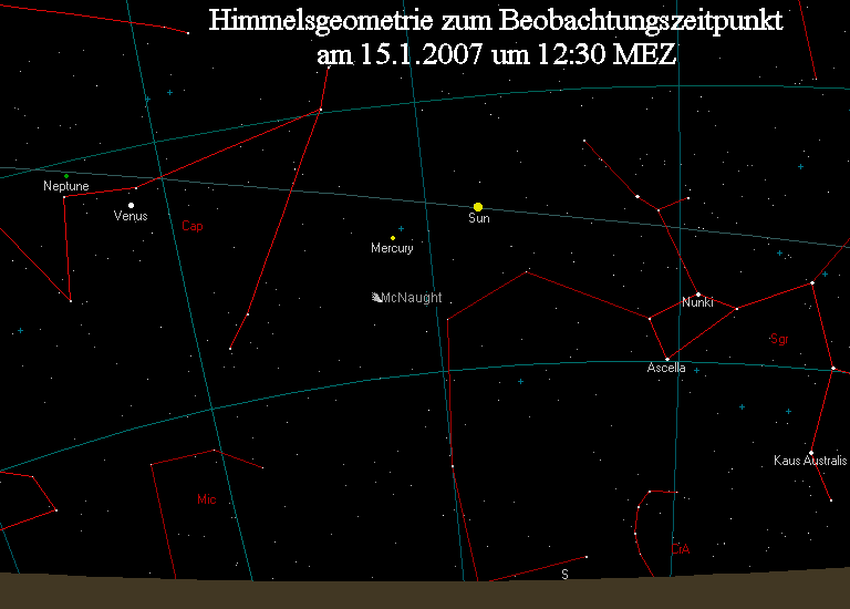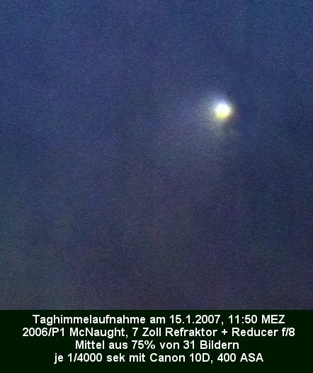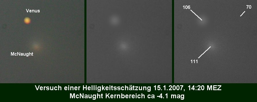 Am Sonntag den 14.1.2007 hatte der Komet McNaught im Vergleich zum Vortag
