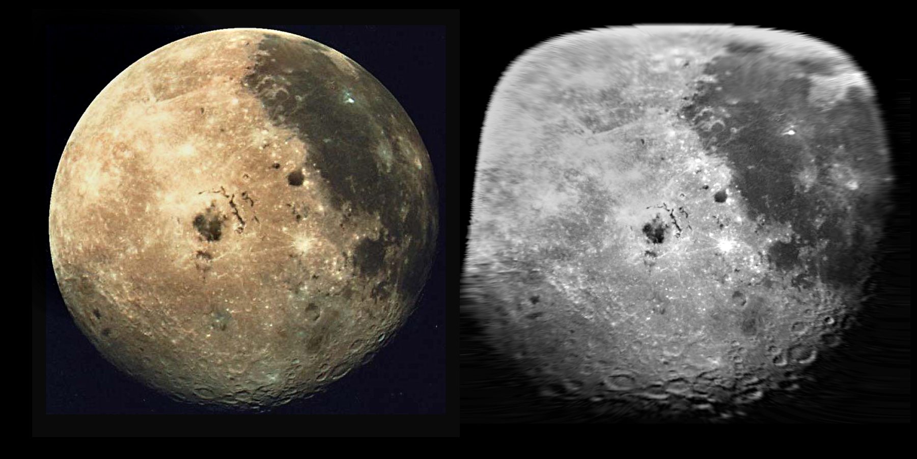 stark überhöht. Zugleich wurden die vorgelagerten Krater entzerrt