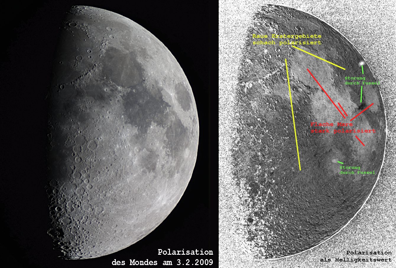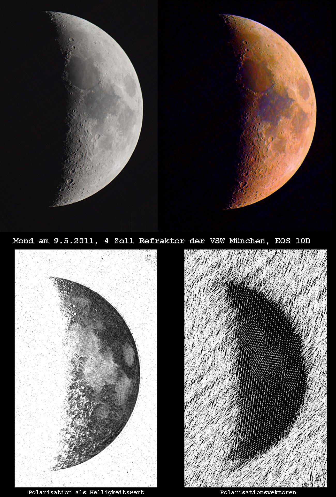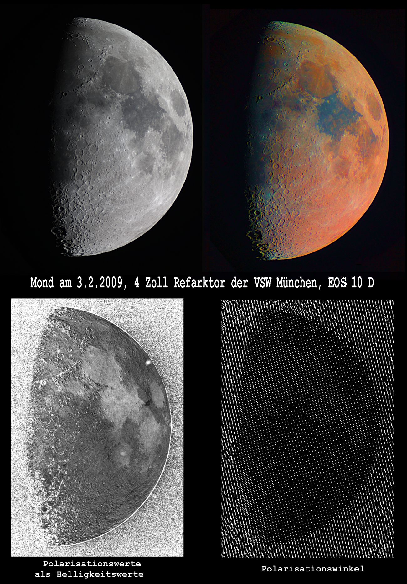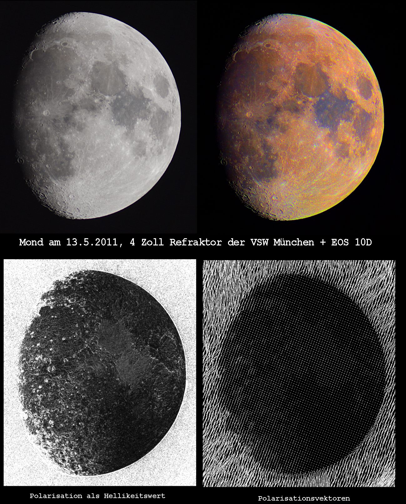 Leider sind Farbe und Polarisation beim Mond nur schwach ausgeprägt.