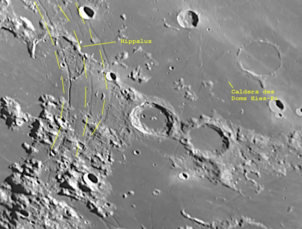 Rand des Mare Humorum verlaufen. Bruchzonen die beim Mare-Einschlag entstanden sind, wären eine plausible Erklärung.