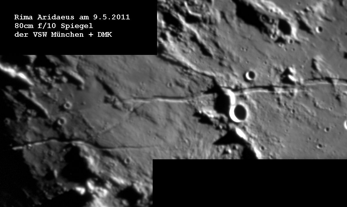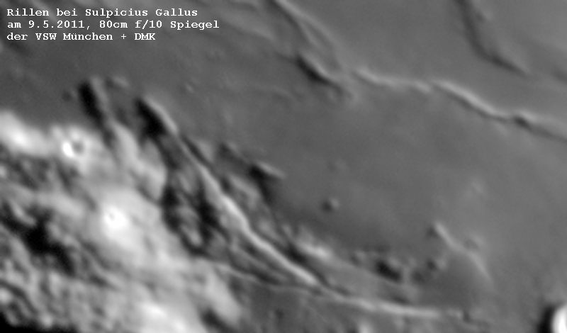 Auch die viel kleineren Rillen beim Krater Sulpicius Gallus waren gut zu erkennen.