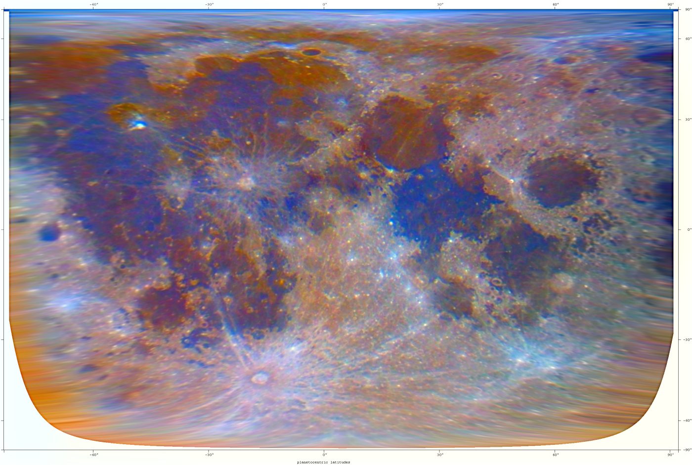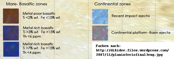 Die exakten Farben erlauben detailliertere Analysen. Die Region südlich des Mare Crisium