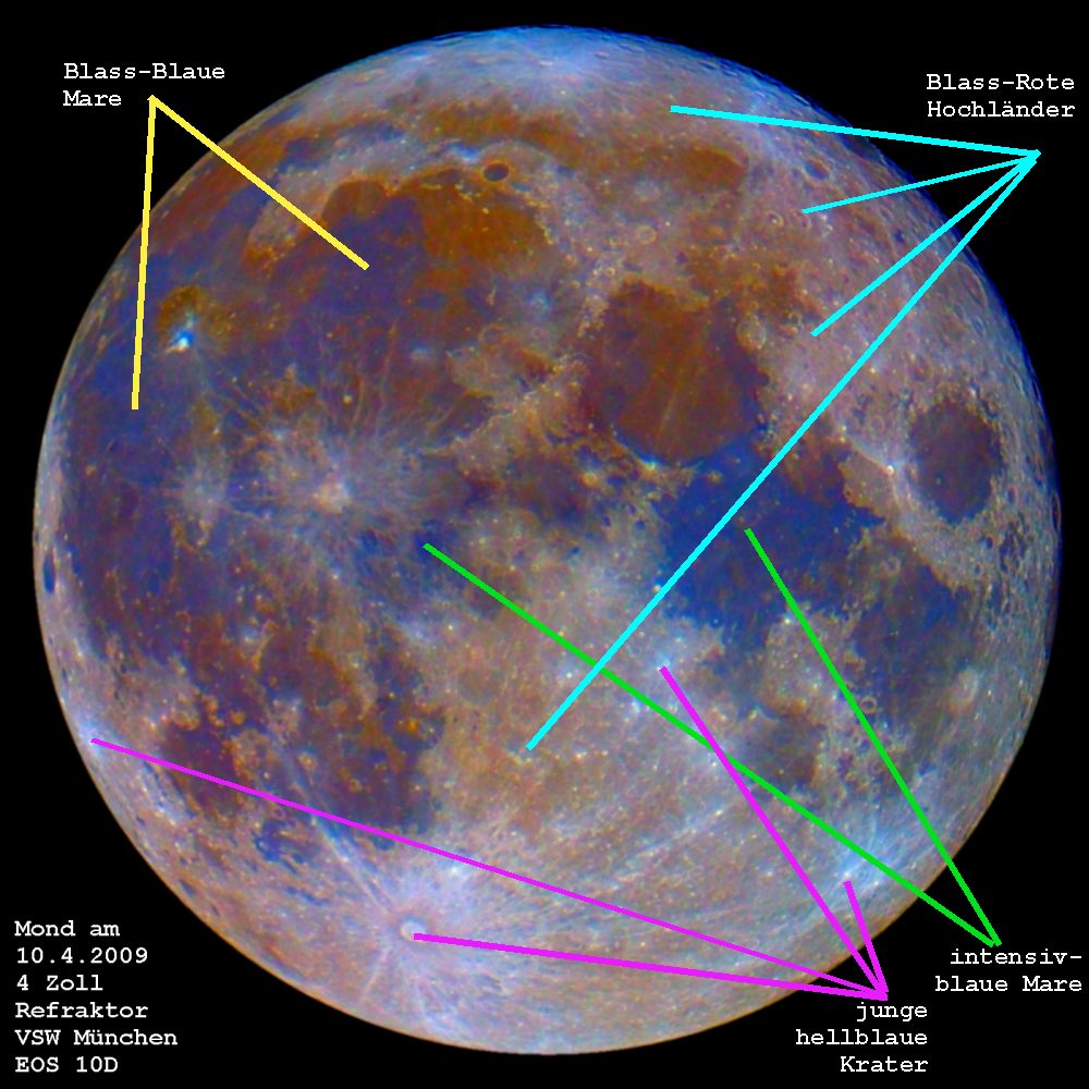 sichtbar werden. Die Farben des Mondes erlauben Rückschlüsse