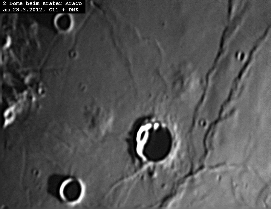 Am 28.3.2012 entstanden 2 Mondbilder von den Lunadomen beim Krater Arago und den