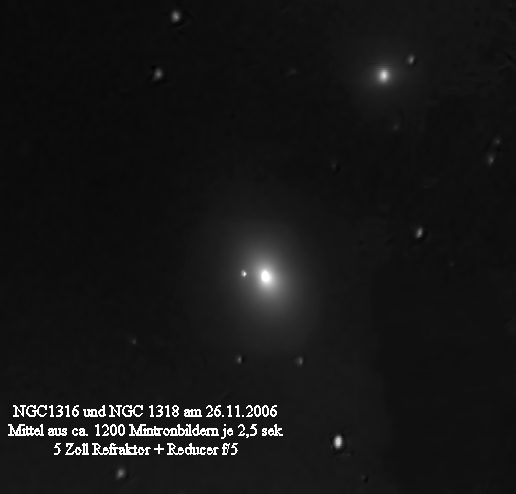 Unweit von NGC1365 steht der Fornax-Galaxienhaufen. Die hellste Einzelgalaxie NGC1316
