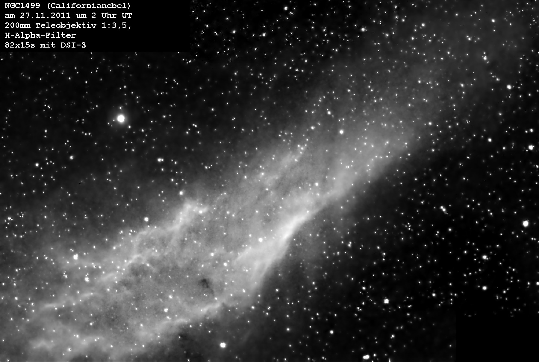 NGC1499 ist auch als Californianebel bekannt. Es ist eine riesige helle Nebelwolke