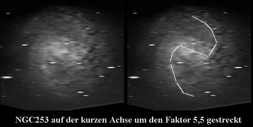 Wenn man die Galaxie auf ihrer kurzen Achse streckt, kann bekommt man einen