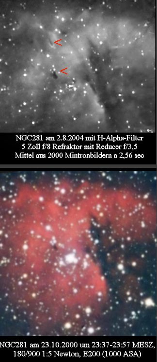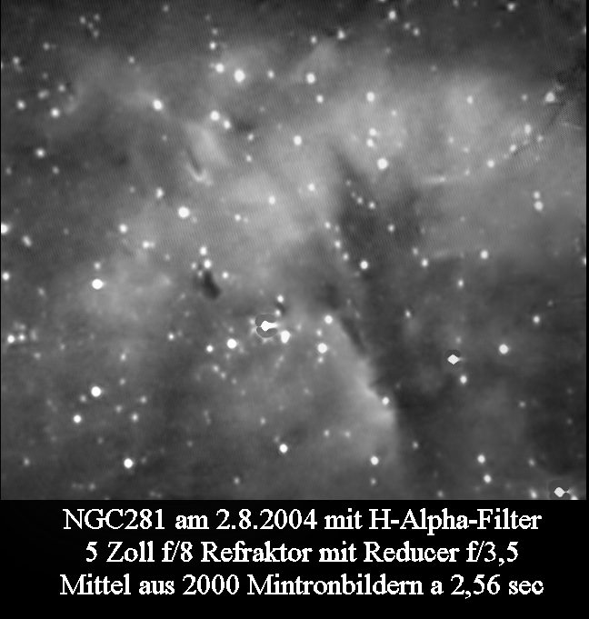 NGC281 ist ein relativ heller Gasnebel rechts unterhalb des