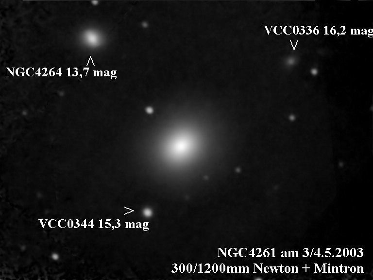 NGC4261, Durchmesser ca. 4', Typ E2, Helligkeit 10,3 mag